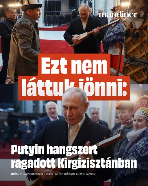 A Kirgizisztánban tartózkodó Vlagyimir Putyin orosz elnököt komuzzal, egy hagyományos kirgiz húros hangszerrel kapták lencsevégre.