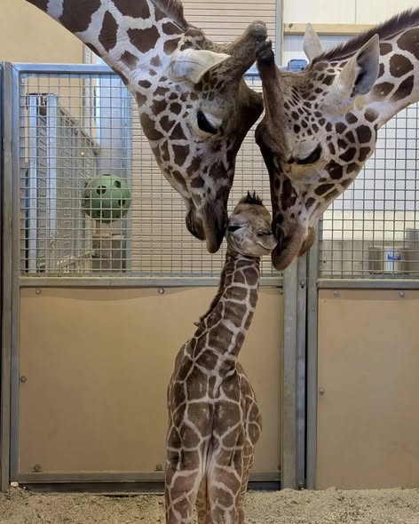 Minden szem az új jövevényre szegeződik: bájos családi fotón a utah-i állatkert január végén született zsiráfborja és szülei.