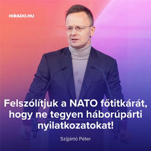 Szijjártó Péter: Felszólítjuk a NATO főtitkárát arra, hogy ne tegyen háborúpárti nyilatkozatokat