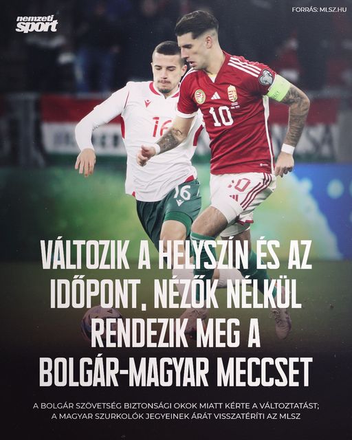 Szófia helyett Plovdivban, 20.45 helyett 18 órától lesz majd november 16-án a bolgár–magyar meccs – nézők nélkül!