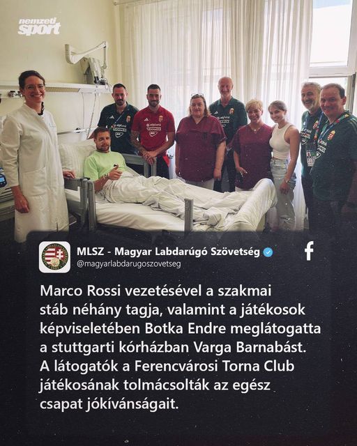 A magyar válogatott küldöttsége meglátogatta Varga Barnabást a kórházban. 🙏