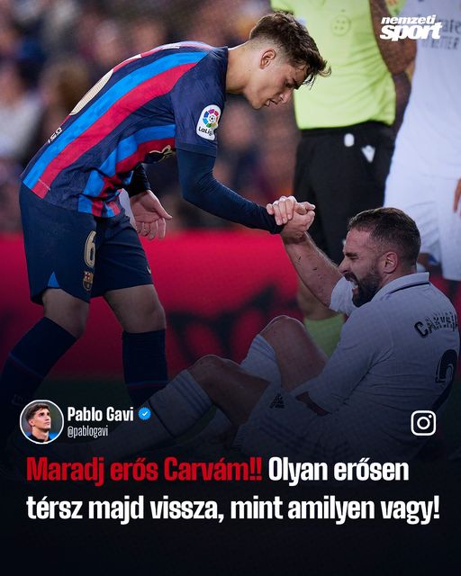 Gavi Instagram-történetében üzent a Villarreal ellen térdszalagszakadást szenvedett Dani Carvajalnak. 👏🤝