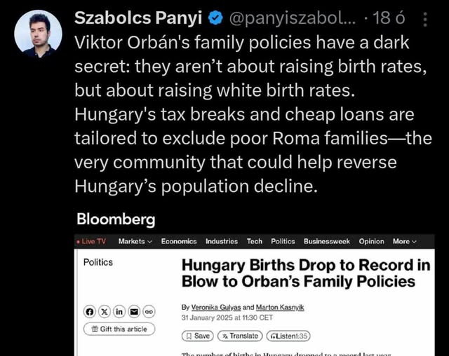 Olvasom az X-en, hogy a telexes Panyi Szabolcs azt magyarázza: a kormány munkaalapú családtámogatásai kirekesztik a romákat. Ami ugye csak akkor lehet igaz,…