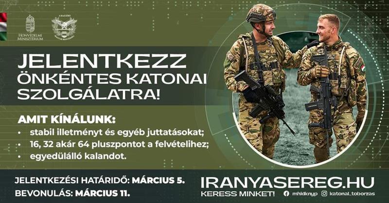 Jelentkezz március 05-ig és az Önkéntes Katonai Szolgálattal egyszerre jutsz közelebb felsőoktatási céljaidhoz és leszel…