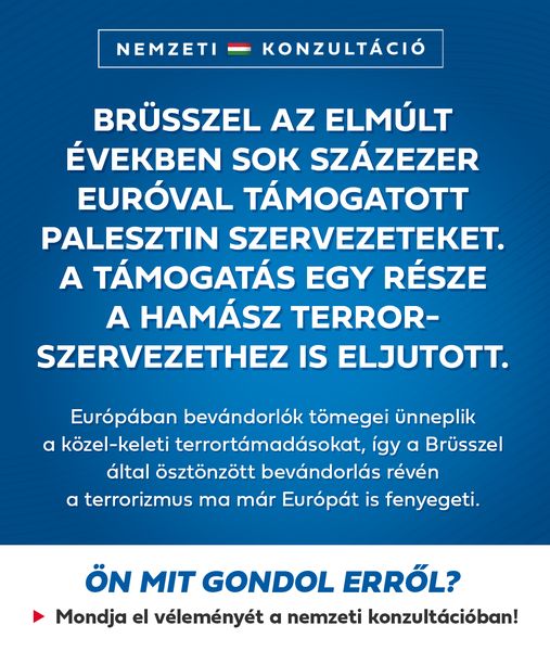 A Brüsszel által palesztin szervezeteknek nyújtott támogatások a Hamászhoz is eljutottak. Erről is véleményt mondhatunk az új nemzeti konzultációban.