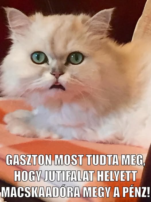 Gaszton cicám sajnos már nem él. De biztos vagyok benne, hogy pont ilyen arcot vágna arra, hogy a Tisza Párt „macskadót” (értsd: macskaadót) szeretne bevezetni.