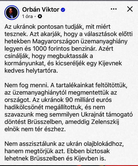 ️ “Nem áll módomban semmilyen, Ukrajna számára kedvező döntést támogatni mindaddig, amíg vissza nem térnek a normalitáshoz” - ezt írta Orbán Viktor az Európai Tanács elnökének, aki azt követeli a…