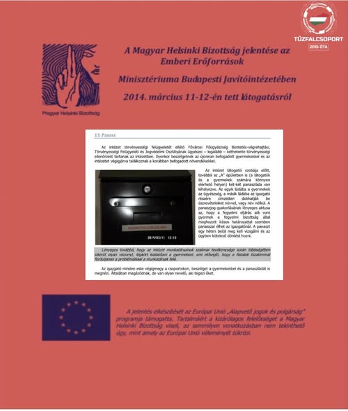 A Magyar Helsinki Bizottság korábbi jelentése a Szőlő utcai javítóintézetről cáfol egy sor kemény állítást