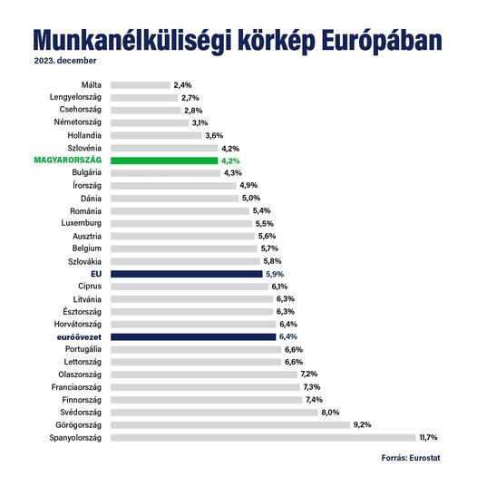 Magyarország továbbra is uniós élmezőnyben van a foglalkoztatottsági rangsorban.