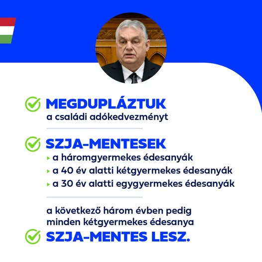 Ezekkel az intézkedésekkel három éven belül 1 millió édesanya válik adómentessé egész életére.