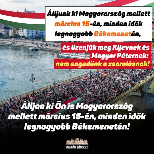 A március 15-i Békemeneten egyértelműen megüzenjük Kijevnek és Magyar Péternek, hogy Magyarország nem hagyja magát zsarolni.