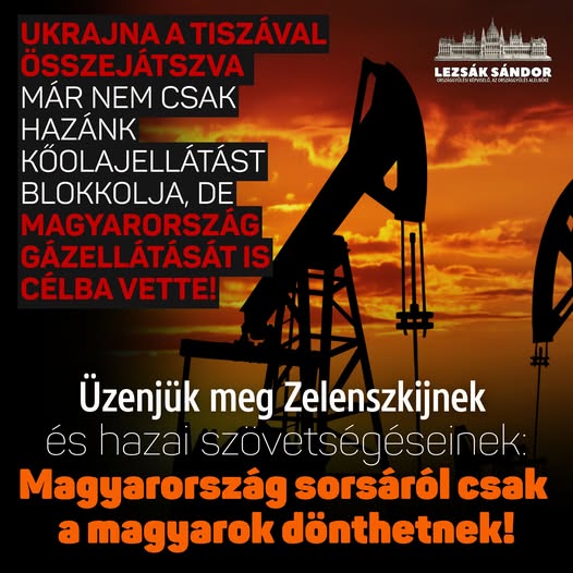 Kijev, a Tisza Párttal karöltve, a kőolaj után most már a gázellátásunkat is fenyegeti, ezzel veszélyeztetve az ország energiabiztonságát.
