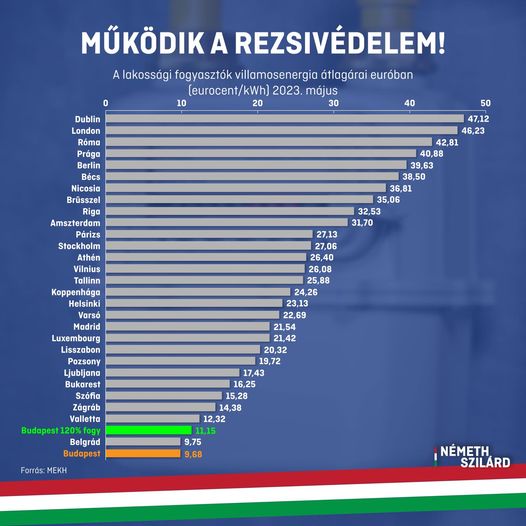 Eurostat: májusban is a magyarok vehették az EU-ban legolcsóbban a háztartási energiát.