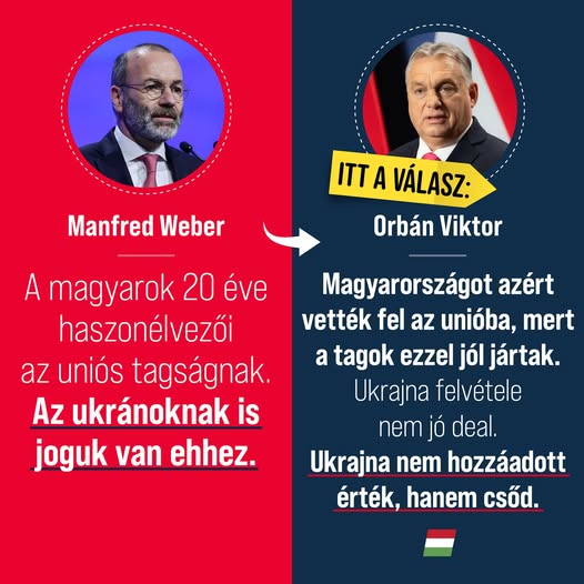 A brüsszeliek azt gondolják, hogy Ukrajna csatlakozását úgy kell finanszírozni, hogy hatalmas hitelt kell fölvenni. - Orbán Viktor #fidelitas