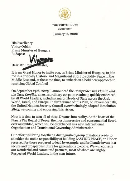 Trump elnök felkért, hogy csatlakozzunk a Béketanács munkájához, alapítóként. Elnök úr megtisztelő felkérését természetesen…