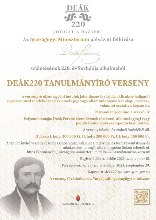 Az idén 220 éve született Deák Ferenc emléke előtt tisztelegve az Igazságügyi Minisztériumegy olyan évfordulós ünnepségsorozat megrendezését tűzte ki célul, amely alkalmas arra…