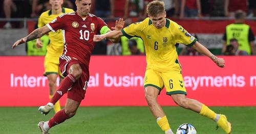 A visszavonulását bejelentő, 86-szoros magyar válogatott csatár, Szalai Ádám a lelátóról szurkolt a nemzeti csapatnak a litvánok elleni mérkőzésen.
