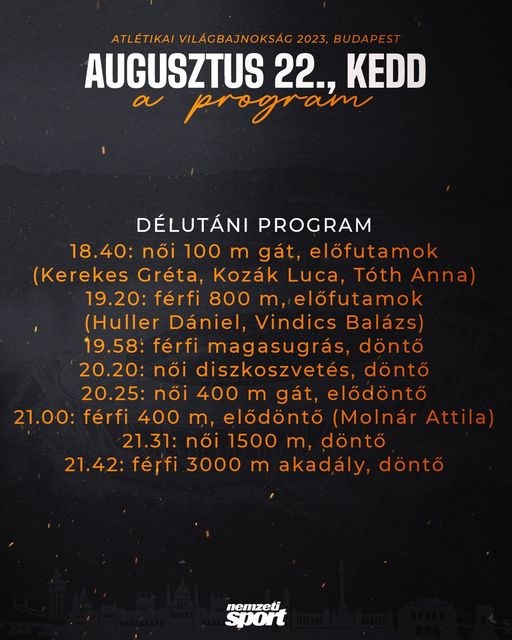 Folytatódnak a budapesti atlétikai világbajnokság küzdelmei, a férfi 400 méteres elődöntőben Molnár Attilának szurkolhatunk.