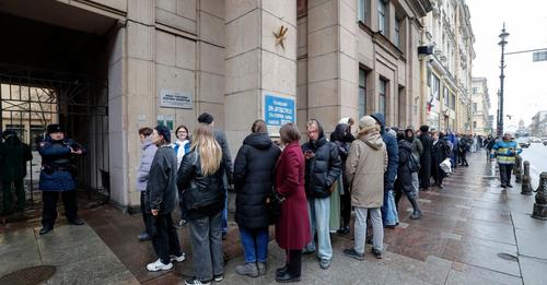 Szavazóhelyiség elõtt állnak sorban emberek…