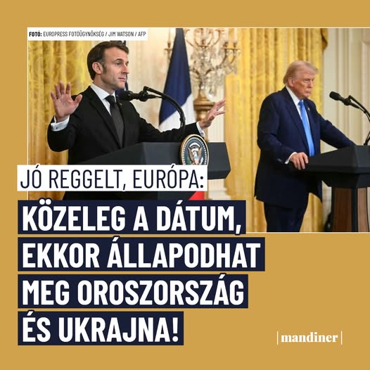 Heteken belül fegyverszünet kötheti le Ukrajna és Oroszország háborúját: https://mandiner.hu/kulfold/2025/02/jo-reggelt-europa-kozeleg-a-datum-ekkor-allapodhat-meg-oroszorszag-es-ukrajna