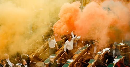 A Fidesz frakcióvezetője kifakadt az üléstermet füstbe borító Momentum…