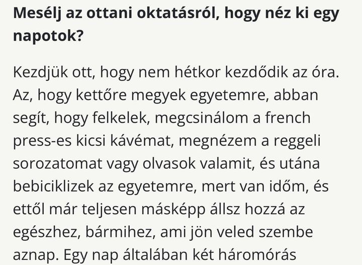 ennél jobb és a valóság apró rezdüléseire kiválóan rezonáló interjú azóta sem készült külföldön tanuló egyetemistával