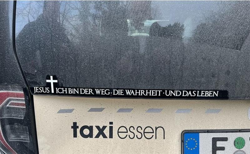 Én vagyok az út, az igazság és az élet. Meg egy 1000 dolláros büntetés. Ennyire büntettek ugyanis egy esseni taxist azért, mert egy napig ezzel a bibliai idézettel az autójára matricázva közlekedett.…
