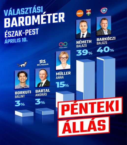 Pénteken azt mutatta az észak-pesti barométer, hogy mindössze egy százalékkal vagyok lemaradva Brüsszel jelöltje, Barkóczi Balázs mögött.