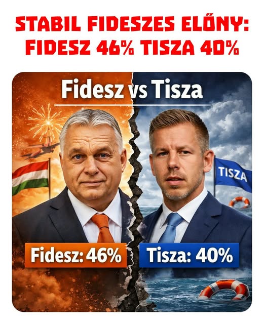 ️ Stabil fideszes előny: Fidesz 46% Tisza 40%