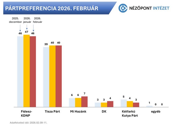 Fidesz 46, Tisza 40,