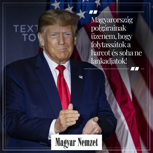 ️ Nekünk, magyaroknak üzente ezt mondatot Donald Trump, hogy ne lankadjunk a barbárok, marxisták, globalisták és kommunisták elleni harcban.