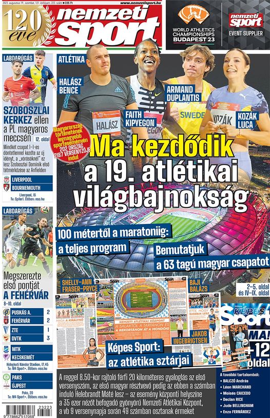 Budapestre figyel a sportvilág, kezdődik az atlétikai vb!; Szoboszlai–Kerkez összecsapás a világ legerősebb ligájában!