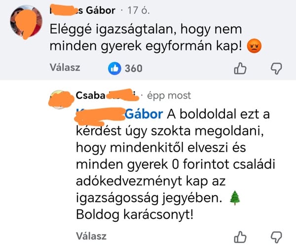 A baloldal úgy szokta megoldani, hogy minden gyerek egyenlő mértékben kapjon, hogy nem ad senkinek semmit.