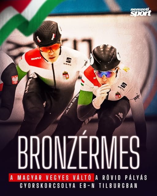 A magyar női váltó után a vegyes váltó (Végi Diána Laura, Somodi Maja, Nógrádi Bence, Moon Wonjun) is bronzérmes a rövid pályás gyorskorcsolya Eb-n! 👏