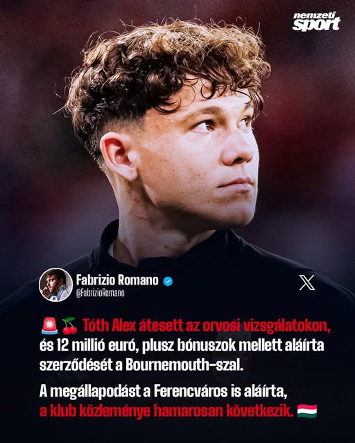 Fabrizio Romano értesülései szerint a Bournemouth hamarosan bejelenti Tóth Alex érkezését!