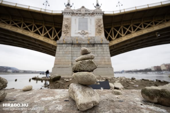 Kibukkant a vízből a Margitsziget déli csúcsa a Duna alacsony vízállása miatt.