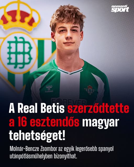 Csütörtökön hivatalossá vált, hogy a 16 esztendős Molnár-Bencze Zsombor a Real Betis akadémiáján folytatja pályafutását – jelentette be jelenlegi csapata, a Huesca. ✍️