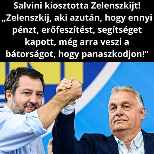 Salvini alaposan helyre tette Zelenszkijt, aki évek óta az európai adófizetők pénzén él, és ezek után még képes beleállni uniós tagállamok vezetőibe - elsősorban, Orbán Viktorba.