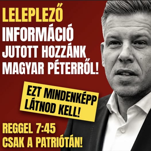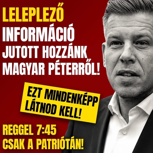 👇Ez izgalmas lesz! 7:45-kor a Patrióta YouTube-csatornán leleplezzük Magyar Pétert! Ki ne hagyd!