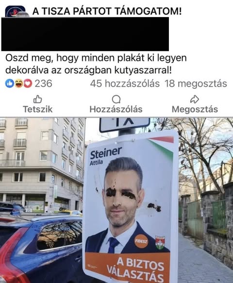 ️Országos akcióra buzdítanak, hogy az összes fideszes jelölt arcképe legyen bekenve kutyaürülékkel. A tiszás förtelem…