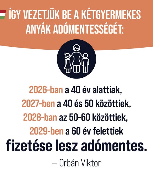 2026-tól a 40 év alatti kétgyermekes anyáknak már nem kell adót fizetniük. Az szja-mentességet négy év alatt építjük be teljesen az adórendszerbe.
