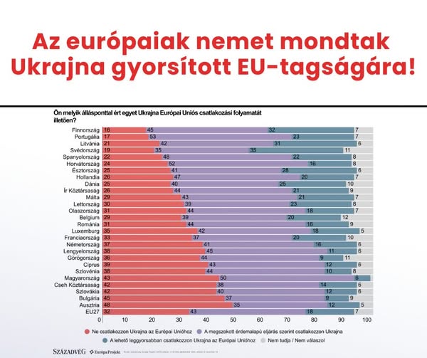 Az emberek félelmei a gyorsított csatlakozás miatt nagyon is valósak. Az európaiak attól félnek, hogy Ukrajna csatlakozásával romlik az élelmiszerbiztonság, ellehetetlenülnek a gazdák, nőnek a háború utáni biztonsági kockázatok, és közben kevesebb pénz jut a saját országukra. Magyarországon és több más országban ezért szinte teljes a társadalmi ellenállás az azonnali csatlakozással szemben, mert az emberek érzik, hogy itt nem ideológiai vitáról, hanem a saját életük védelméről van szó
