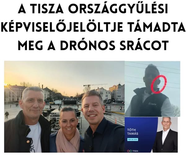 Rátámadtak a Megafonnak drónfotókat készítő srácra Magyar Péter verőemberei, akik közül az egyik a TISZA képviselőjelöltje, a párt országos listáján a 45. helyet elfoglaló Tóth Tamás.