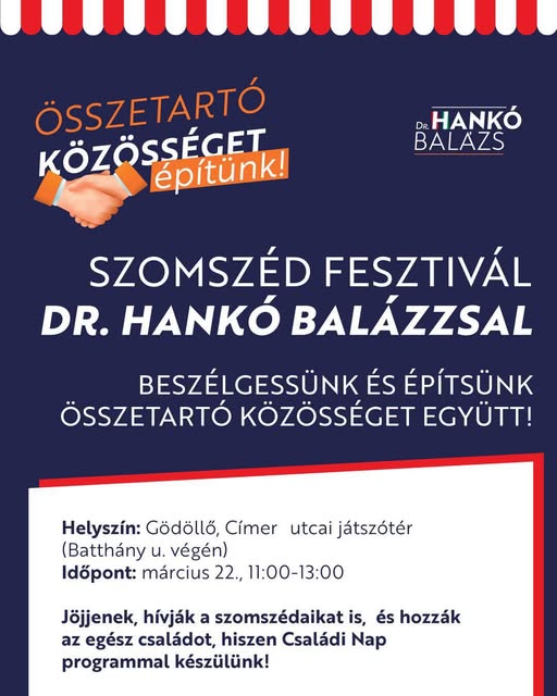 Március 22-én 11:00-tól szeretettel várom Önöket a Szomszédfesztiválon.