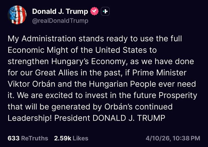 “Az USA teljes gazdasági erejét arra fogom használni, hogy megerősítsem Magyarország gazdaságát.” (Donald Trump)