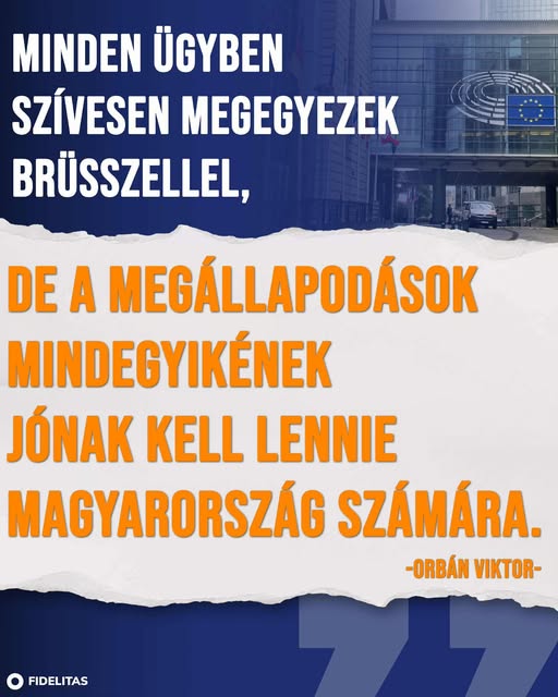 Minden ügyben szívesen megegyezek Brüsszellel, de a megállapodások mindegyikének jónak kell lennie Magyarország számára. - Orbán Viktor