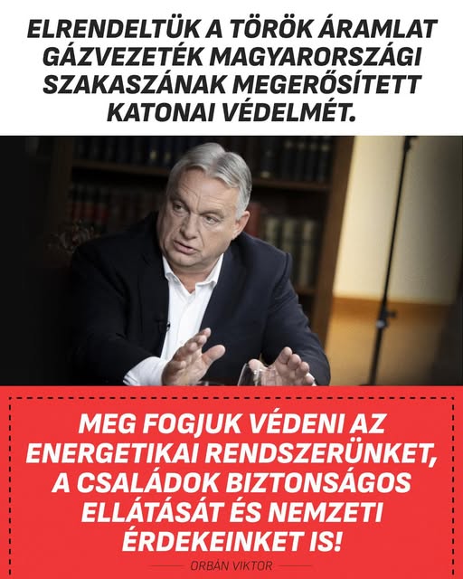 ️ A miniszterelnök elrendelte a hazánkat ellátó Török Áramlat gázvezeték magyarországi szakaszának megerősített katonai védelmét.