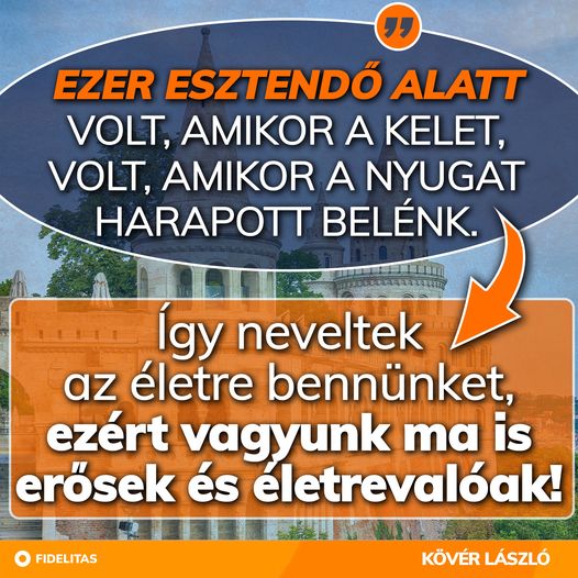 Ezer esztendő alatt volt, amikor a Kelet, volt, amikor a Nyugat harapott belénk. Így neveltek az életre bennünket, ezért vagyunk ma is erősek és életrevalóak. - Kövér László