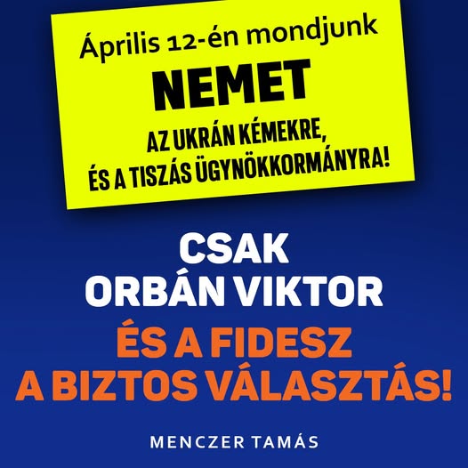 Április 12-én mondjunk nemet az ukrán kémekre, és a tiszás ügynökkormányra!