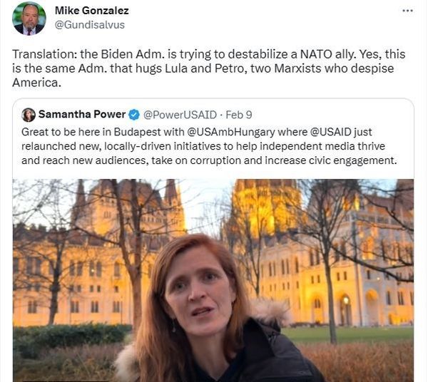 A The Heritage Foundation vezető munkatársa, Mike Gonzalez Twitter-bejegyzésében állt ki Magyarország mellett, Samantha Power, a USAID vezetőjével szemben: